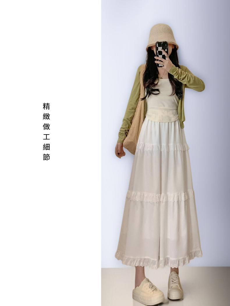 ● 多層蛋糕裙擺設計增添立體感,隨步伐自然飄逸,輕盈夢幻感十足,成為注目焦點。