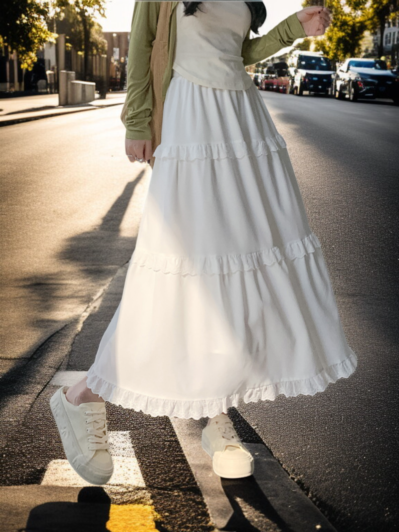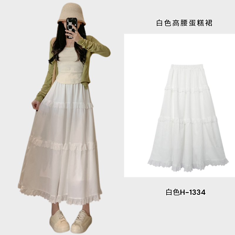 白色高腰蛋糕裙